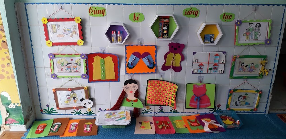 Các cô giáo nên phối hợp nhiều màu sắc nổi bật kết hợp như màu xanh lá, màu xanh dương, đỏ, vàng, cam… sao cho phù hợp và căn phòng được nổi bật.