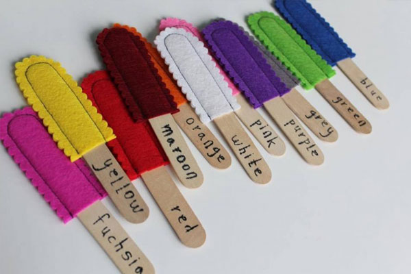 Bước 3: Viết tên các loại màu sắc tương ứng lên trên que kem.