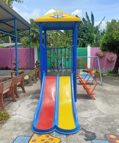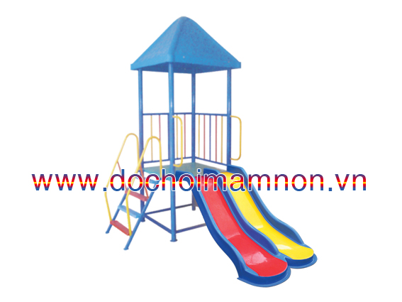 – Khung làm bằng sắt sơn tĩnh điện chống gỉ sét, máng trượt đôi, mái che làm bằng nhựa composite, sử dụng ngoài trời, đảm bảo an toàn tuyệt đối cho trẻ.
