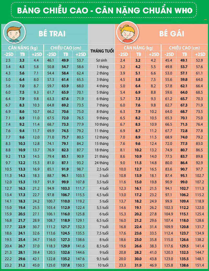 Bạn đang quan tâm đến bảng chiều cao cân nặng chuẩn của các bé trai và bé gái? Bạn muốn hiểu rõ hơn về sự phát triển về chiều cao, về cân nặng của trẻ theo từng độ tuổi?
