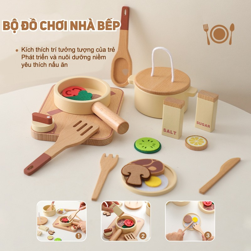 Với bộ đồ chơi nhà bếp bằng gỗ nhỏ xinh gọn gàng cho bé, các bé sẽ có cơ hội đóng vai và nhập vai như những đầu bếp thực thụ, từ đó phát triển tư duy và khả năng giao tiếp. Hãy để các bé nhà bạn khám phá thế giới ẩm thực ngay tại nhà với các món đồ chơi được làm từ chất liệu an toàn và thiết kế sáng tạo. Đừng bỏ lỡ cơ hội để giúp trẻ phát triển trong một môi trường vui vẻ và an toàn nhé!
