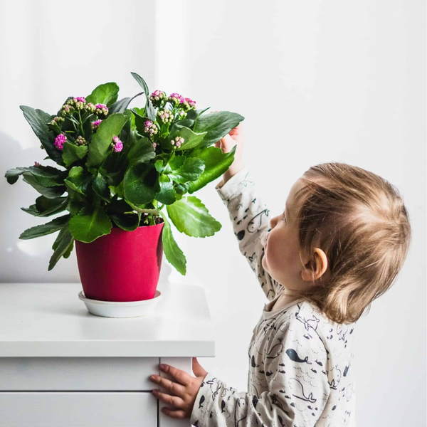 - Cố định chậu cây: Nếu đặt chậu dưới đất, hãy dùng các chậu gốm nặng hoặc cố định giá đỡ để tránh việc bé xô ngã.
