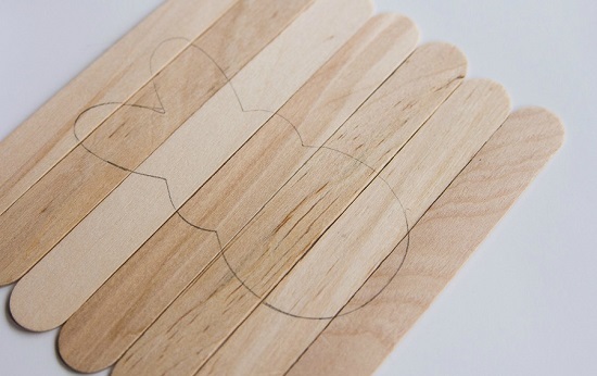 + Bước 2: Dùng bút chì đồ theo viền của khuôn, nhớ giữ thật chặt tay và đi nét chì nhẹ nhàng để tránh làm xô lệch que kem nhé.
