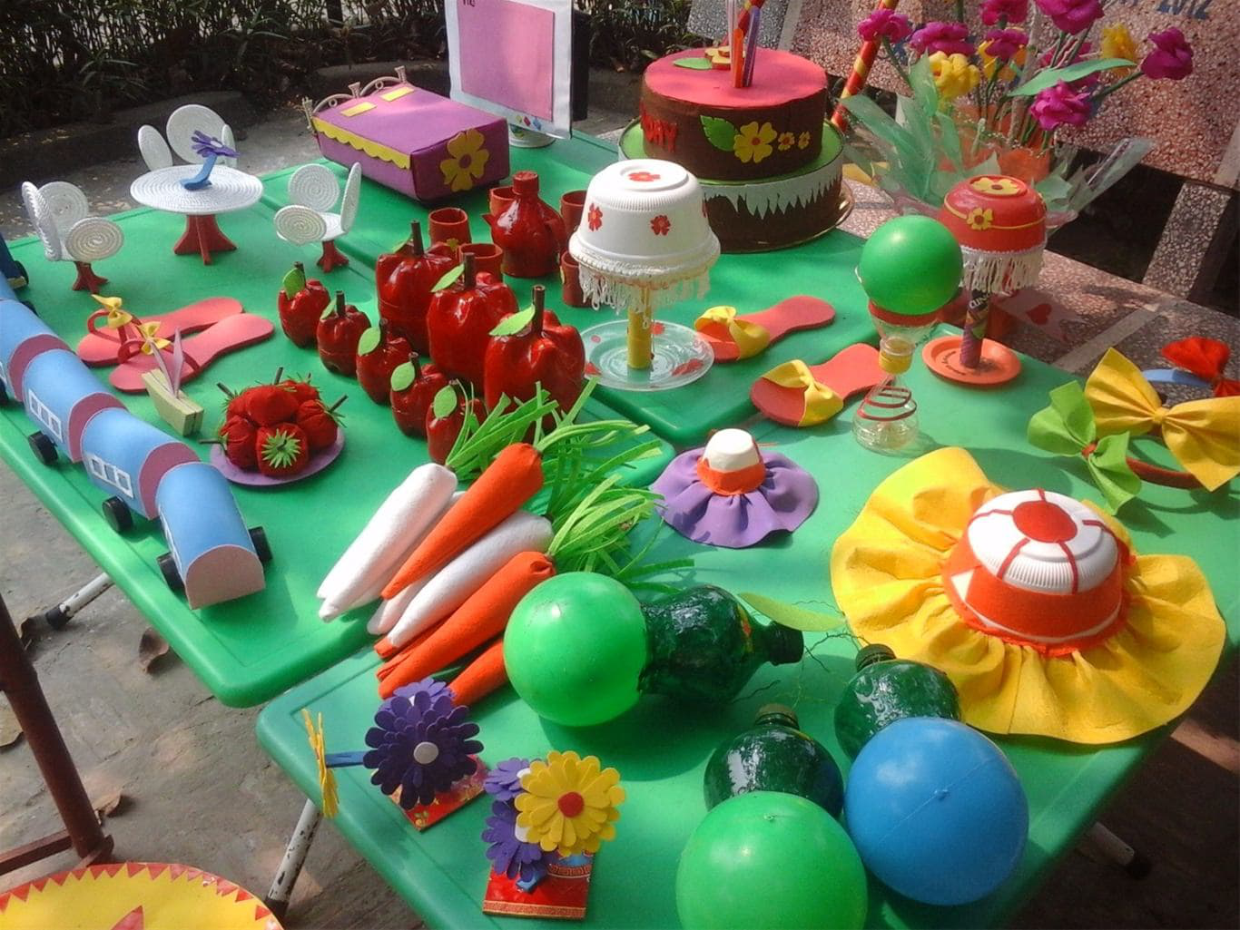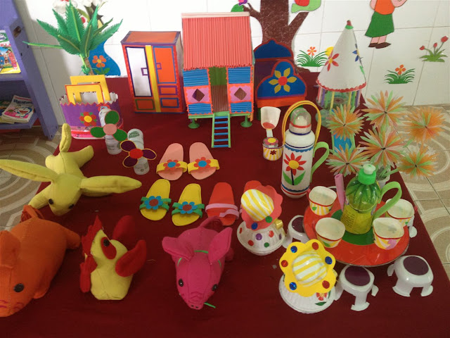 Thật khó để tin được là những nguyên vật liệu bị bỏ đi giờ lại được mang một cái tên gọi mới là đồ dùng đồ chơi dạy học cho trường mầm non, đây là những món đồ chơi không tìm thấy nhãn hiệu nhưng lại mang đầy ý tưởng sáng tạo của các cô giáo mầm non. Tại trường mầm non, các cô giáo đôi khi còn thức đêm và tận dụng ngày nghỉ để làm đồ chơi cho bé vui chơi và học tập. Các tiết học nhờ đó mà cũng trở nên vui hơn, mang nhiều ý nghĩa hơn.