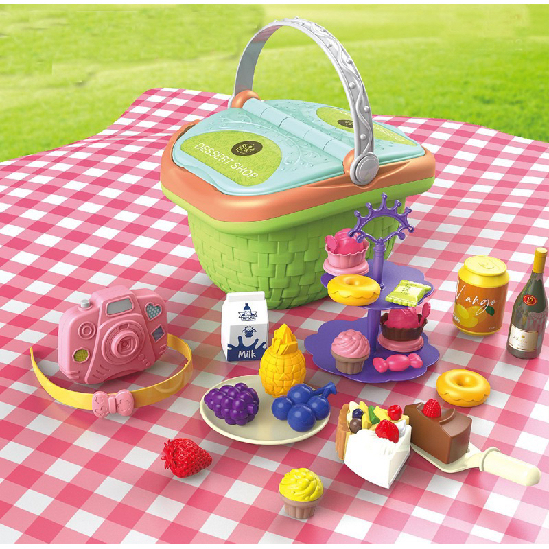 Bộ đồ chơi picnic: Bộ bát đĩa nhựa để chơi đóng vai ăn uống ngoài trời