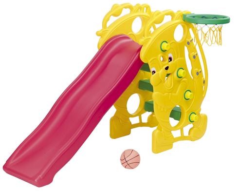 Cầu trượt bóng rổ con voi là sự kết hợp 2 trò chơi cầu trượt và bóng rổ, giúp tăng hứng thú và phát triển toàn diện cho bé. Máng trượt hình lượn sóng có tác dụng làm giảm tốc độ, bề mặt máng thiết kế sần chống trơn trượt, cũng đảm bảo được sự an toàn cho các bé khi chơi.