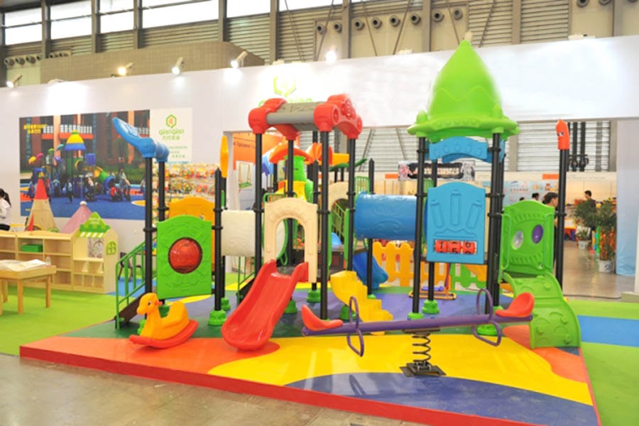 Ví dụ như: Đu quay mầm non, Thú nhún lò xo mầm non, Thang leo thể dục vận động, bật bênh mầm non…