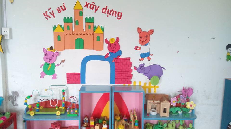 Các cô giáo thường sẽ trang trí cả căn phòng học của bé về một chủ đề nào đó như góc xây dựng. Đối với các bạn lớp 4 tuổi – 5 tuổi đã nhận thức được rất nhiều sẽ cùng cô giáo sáng tạo ra nhiều món đồ chơi, đồ dùng góc xây dựng để trang trí lên lớp học thêm sinh động. Từ đó các em sẽ hăng hái, thích thú, được phát huy khả năng sáng tạo và tưởng tượng của mình.