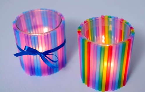 5. Cách làm cốc thắp nến đẹp lung linh trang trí phòng cho bé từ ống hút.