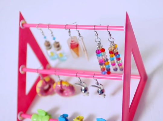 4. Cách làm giá treo đồ trang sức cho bé gái từ ống hút: