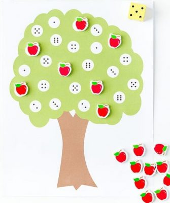 Để chơi trò chơi này, bạn giúp bé lần lượt hái các trái táo xuống và bé sẽ lần lượt đếm số hạt táo được đính trên cây. Bắt đầu hái các trái táo xuống để bé thực hiện phép cộng hoặc dán lên lại để bé làm phép trừ.