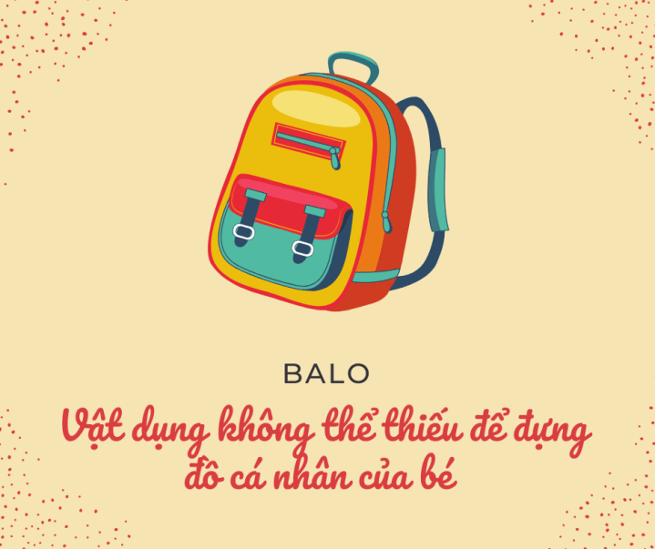 Chắc chắn thứ đầu tiên không thể thiếu là một chiếc balo nhỏ xinh để đựng những vật dụng cần thiết của bé. Mẹ hãy lựa chọn mua chiếc balo có màu sắc, họa tiết dễ thương mà bé thích, nhỏ nhẹ để bé có thể tự đeo. Chắc chắn bé sẽ rất thích thú khi tự đeo balo đi học đấy.