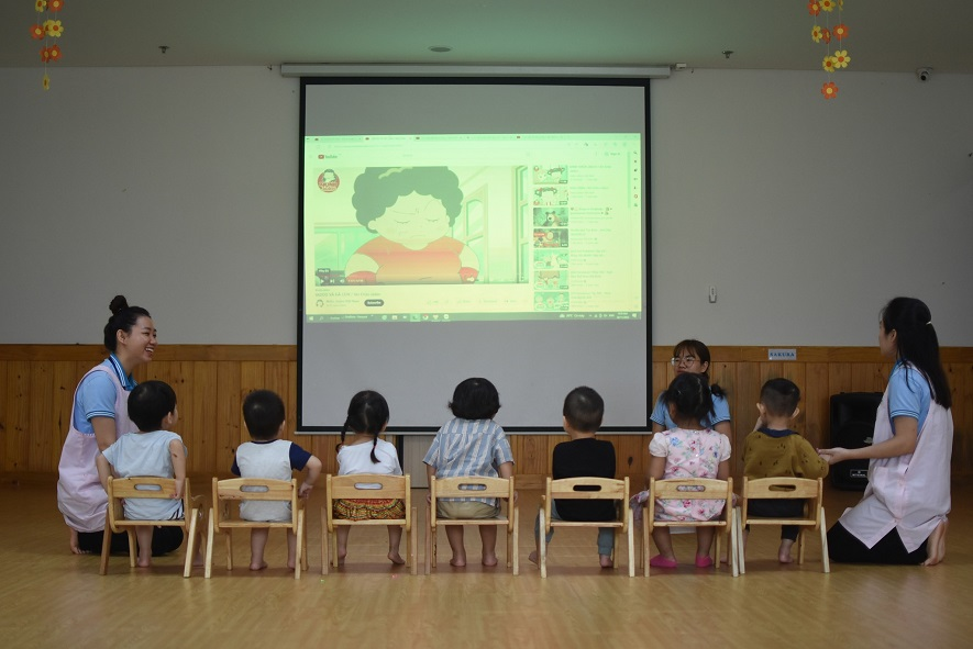 + Quy mô trường mẫu giáo rộng lớn hơn, học sinh cũng đông đảo hơn.
