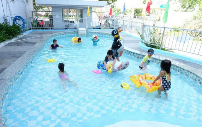 Hoạt động vui chơi tại hồ bơi ở trường của các bé