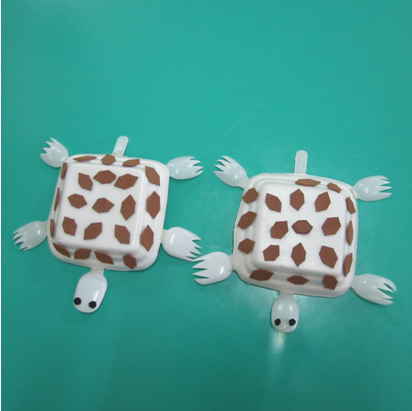 – Chất liệu: Chỉ với hộp giấy cùng với những chiếc thìa sữa chua, keo dán kết hợp với sự khéo léo của các cô giáo tạo ra được những chú rùa trông rất đáng yêu.