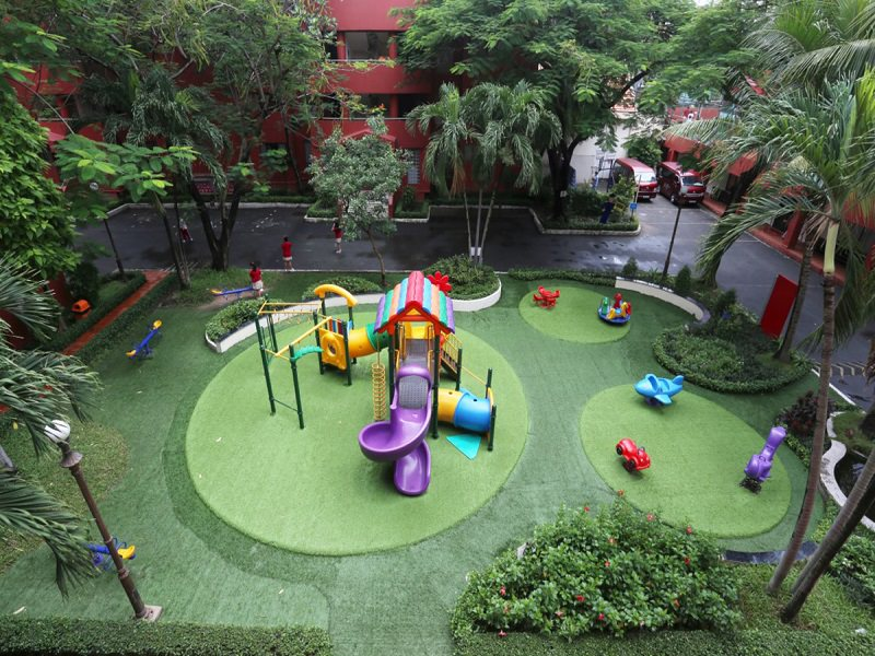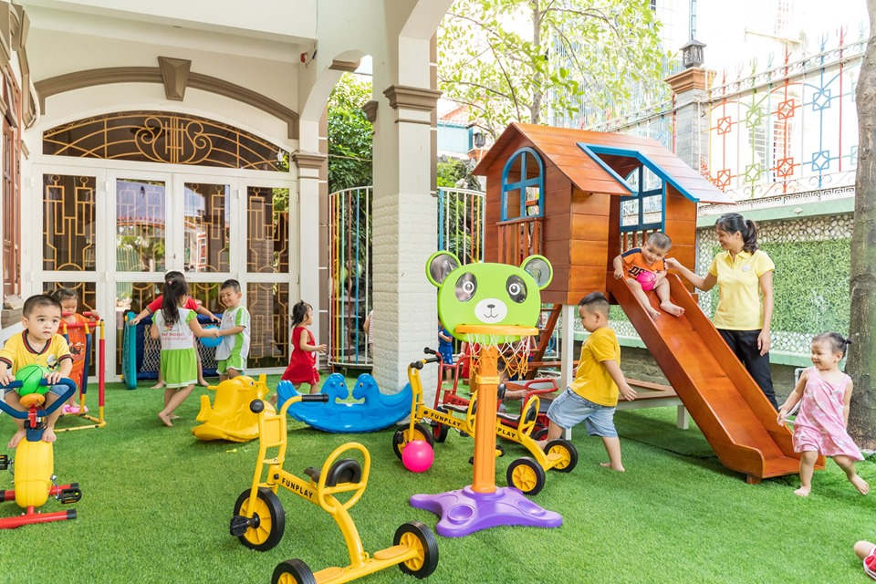 Việc xây dựng, lắp đặt khu vui chơi ở trường không những tạo ra một môi trường vui chơi lành mạnh cho trẻ mà còn tạo thêm nhiều cơ hội phát triển toàn diện cho trẻ. Các trò chơi truyền thống quen thuộc như chơi nhà banh, lego, bập bênh, cầu trượt, trò chơi thú nhún… đều được tích hợp một cách sáng tạo nhất để thu hút được sự thích thú của trẻ, khuyến khích trẻ tương tác và vận động tốt hơn.